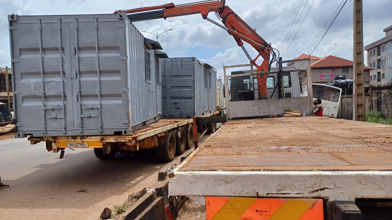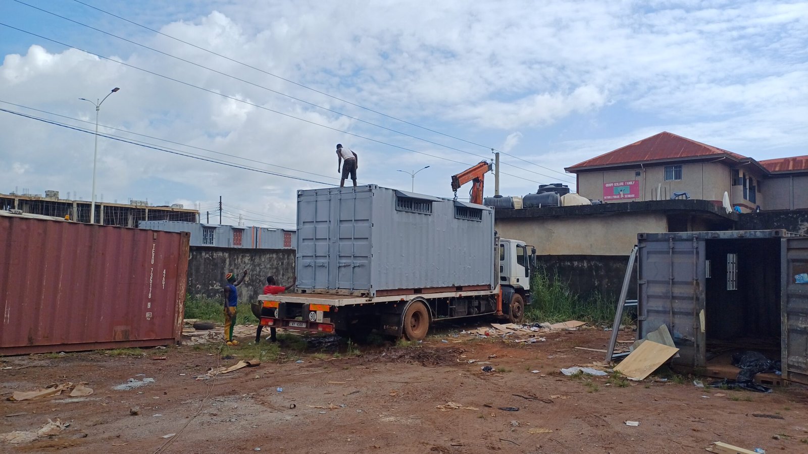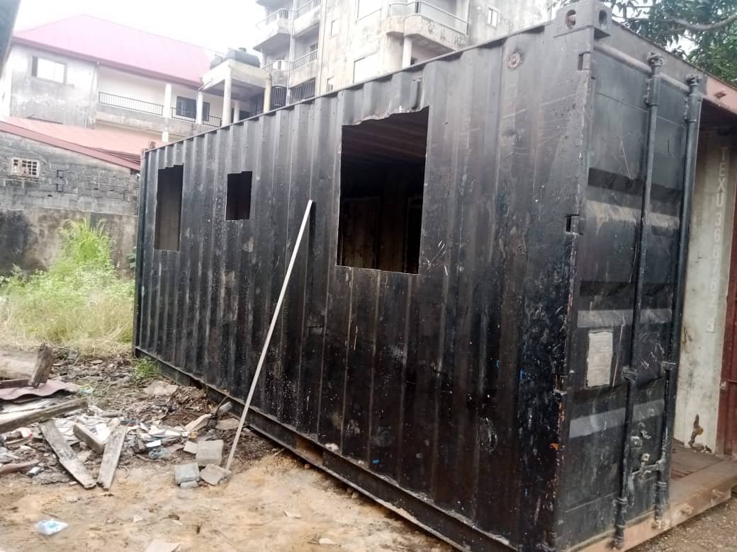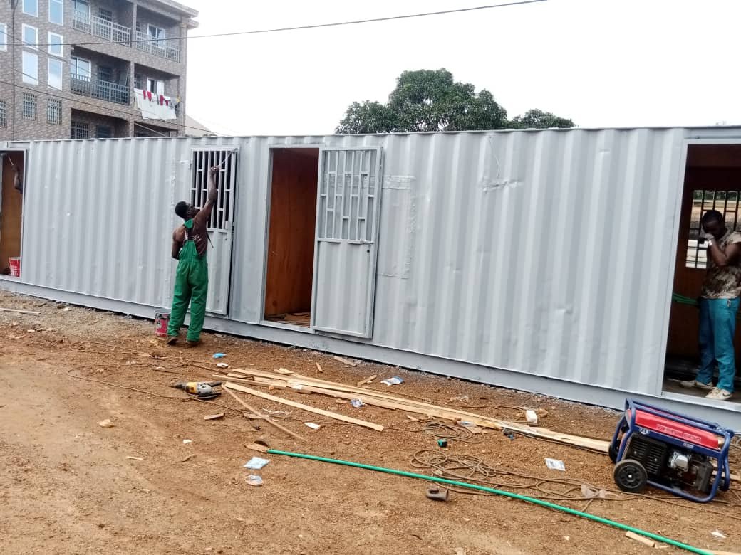 Scope: Il s’agissait ici d’acheter les contenaires dernier voyage et les transformer en bureau, chambre, magasin de stockage etc.